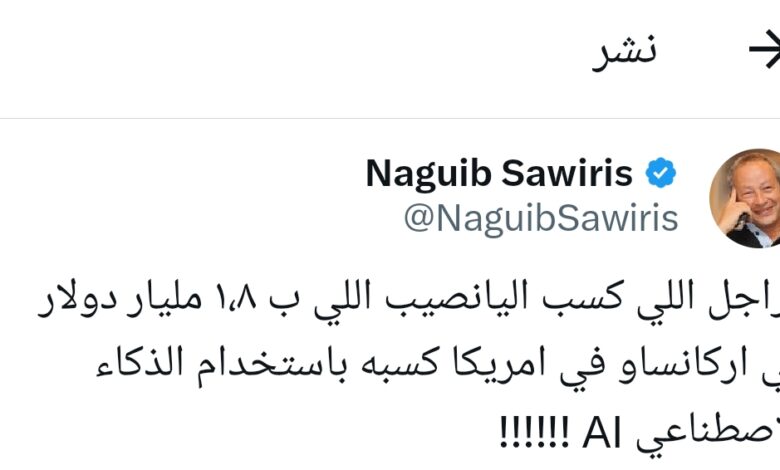 اشعل رجل الأعمال نجيب ساويرس السوشيال ميديا حينما غرد علي موقع تويتر وتحدث عن فوز رجل في امريكا باليانصيب بـ 1.8 مليار دولار بالذكاء الاصطناعي