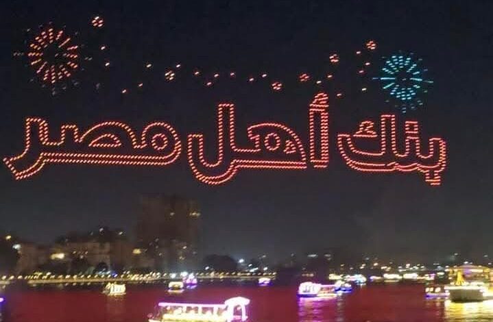 قام البنك الأهلي باضاءة نهر النيل بالالعاب النارية والرسومات فرحا بليلة رأس السنه ومشاركة المصريين في احتفالاتهم بالعام الجديد